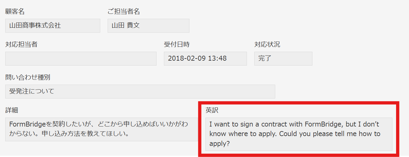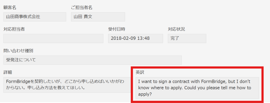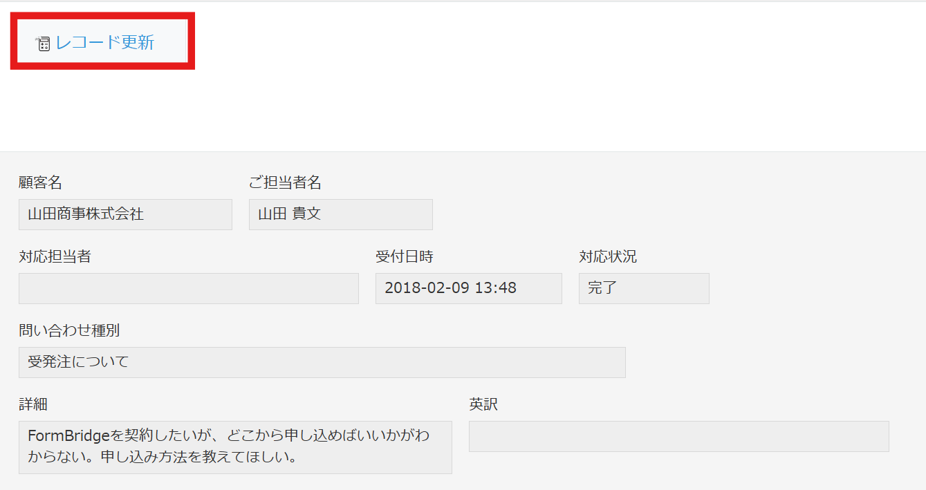 3.kintoneアプリ上でレコード更新を行うと、AIが指示内容を実行した結果が反映されます。