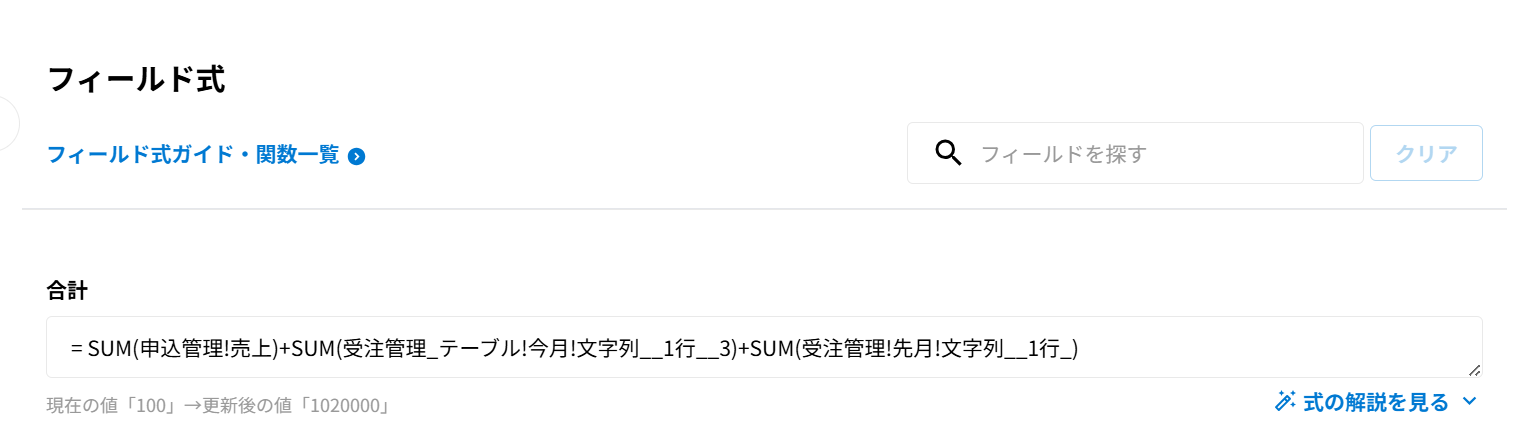 フィールド式の設定方法は、フィールド式を設定するをご覧ください。