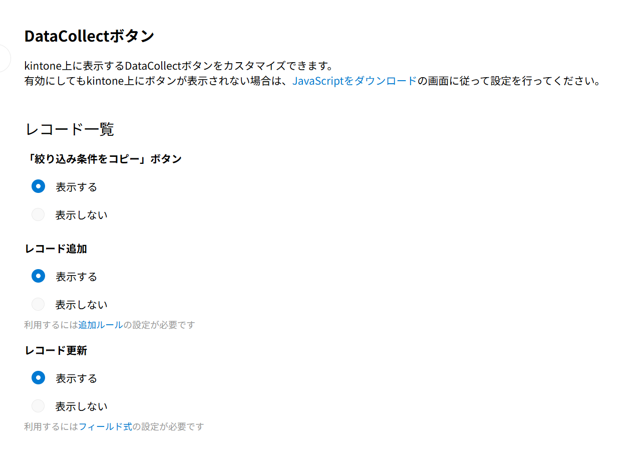 12.DataCollectの機能により、kintoneアプリから他のアプリにレコードを追加する設定を行うことも可能です。詳細は他アプリにレコードを追加するをご確認ください。