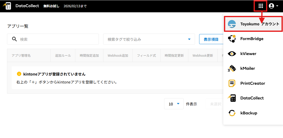 kintoneアプリの登録方法につきましては、kintoneアプリを登録するをご覧ください。