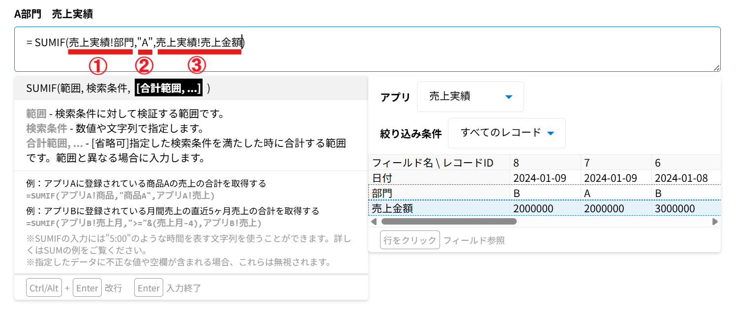 ③売上実績アプリ(集計元アプリ)の「売上金額」を合計する