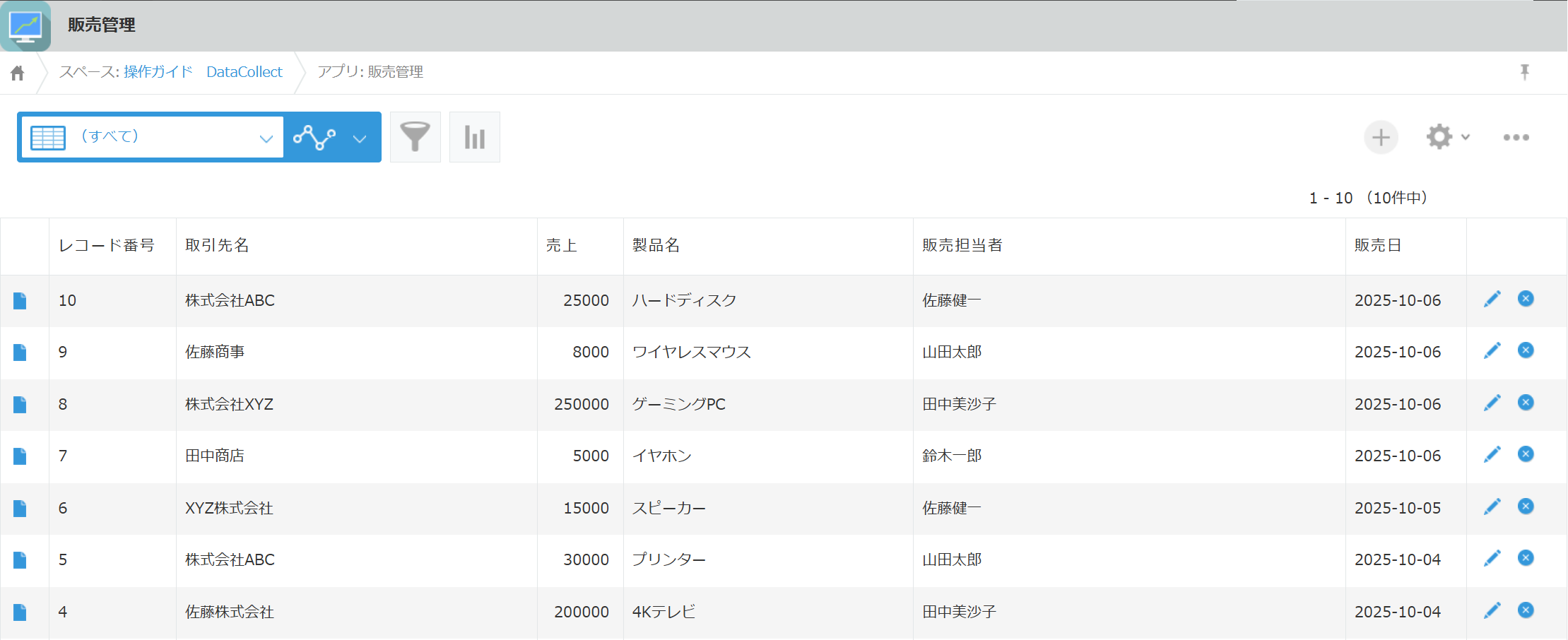 ①販売管理アプリ(集計元アプリ)の「販売担当者」の中で、
