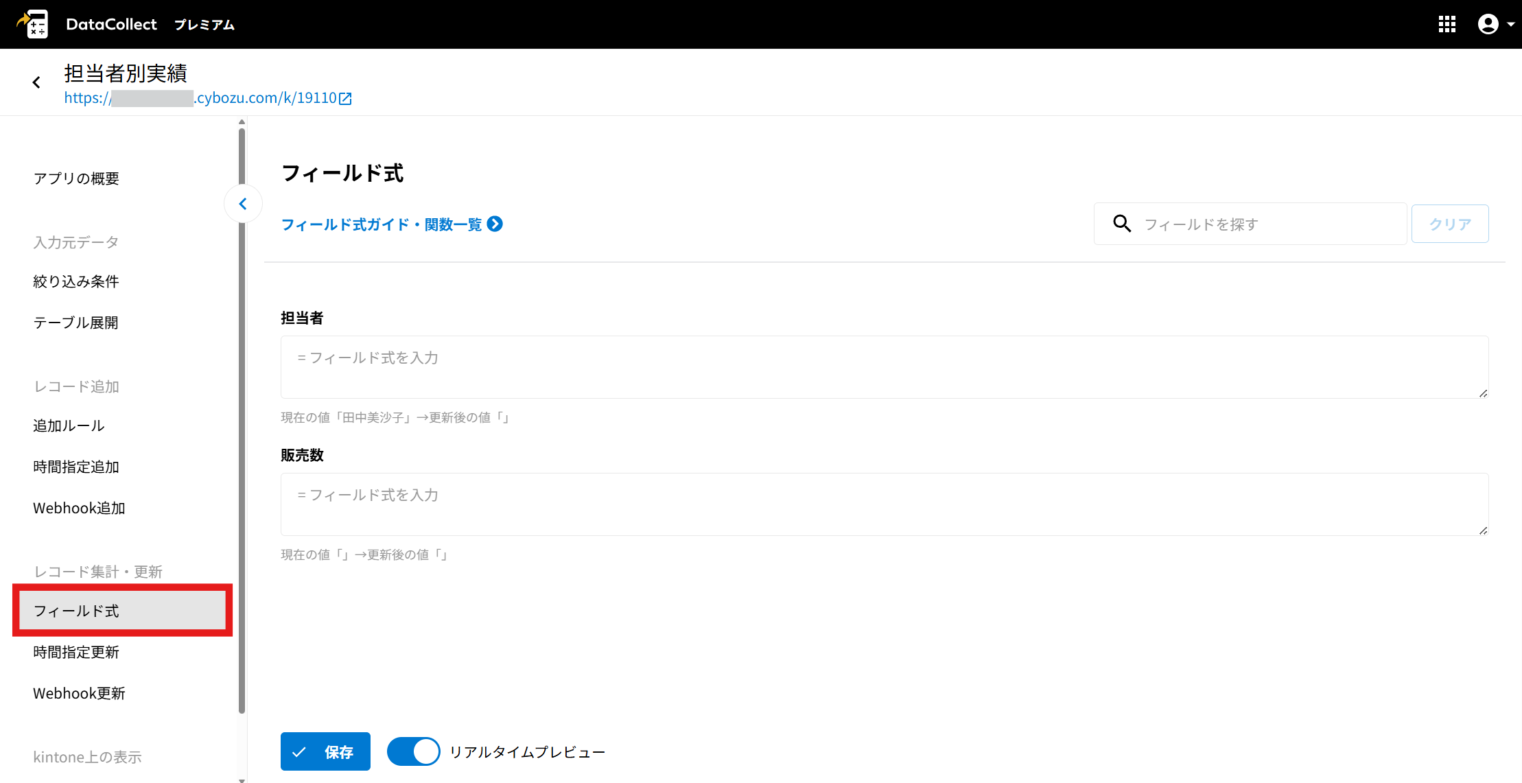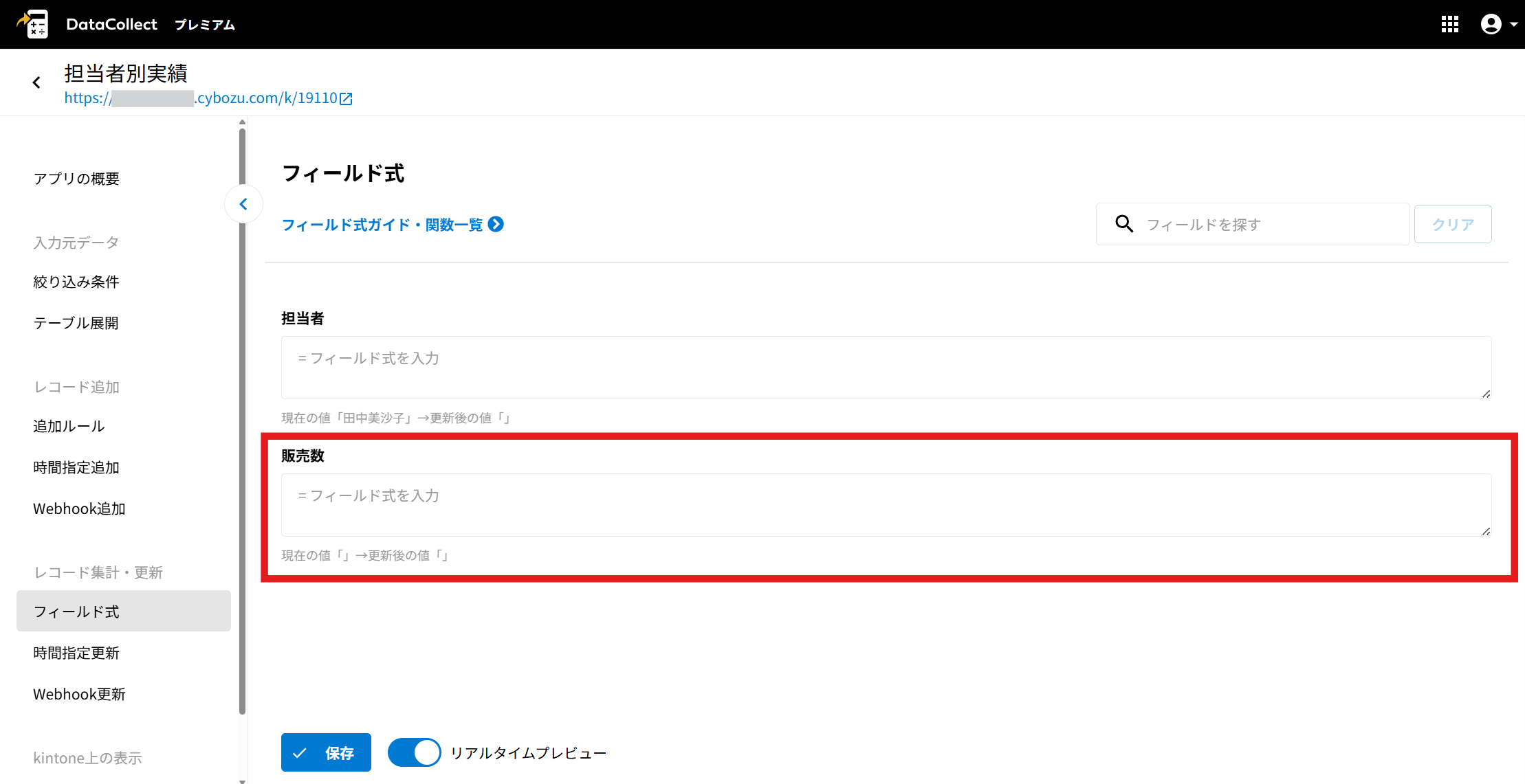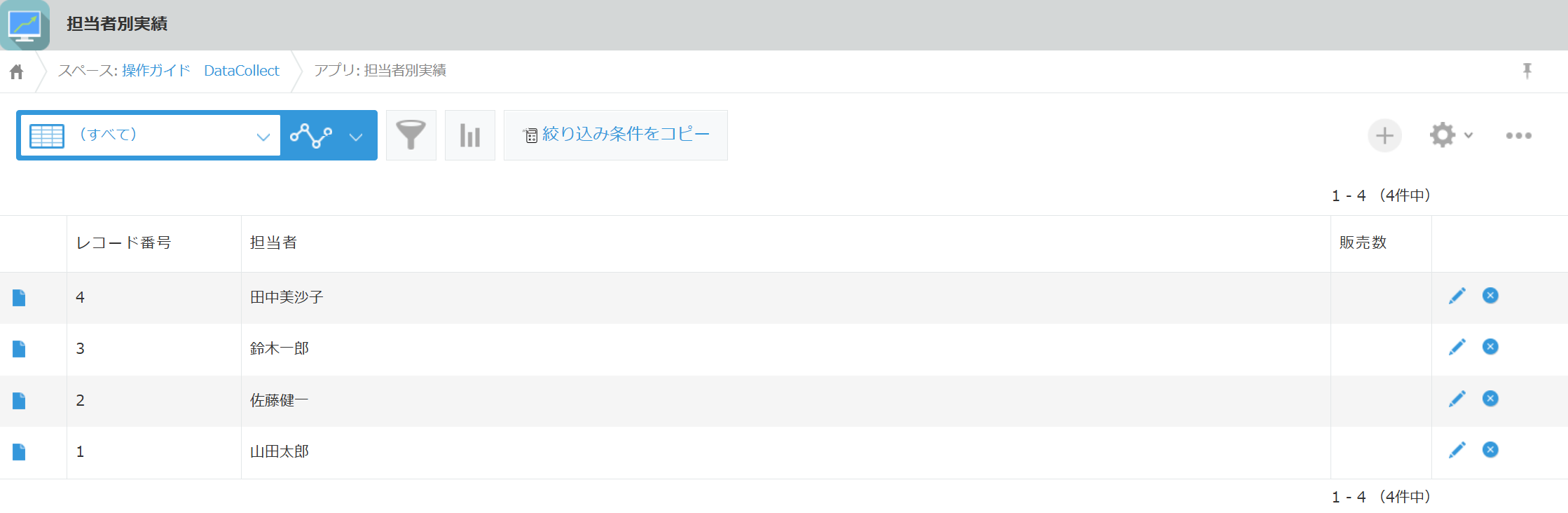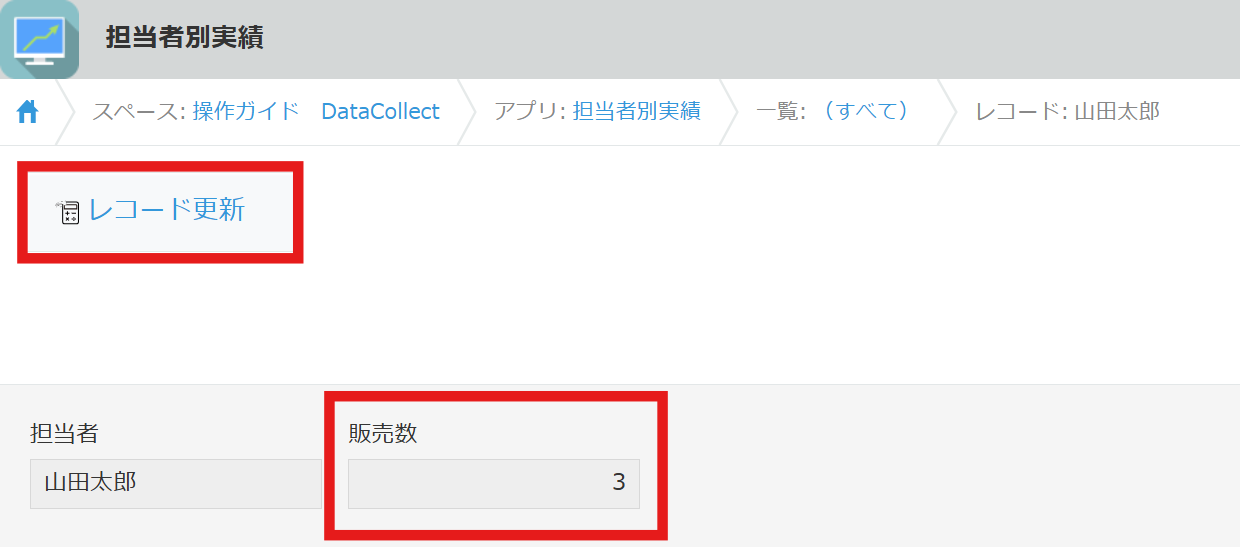 ここでは、販売管理アプリに登録された販売数を、担当者別実績アプリに集計します。