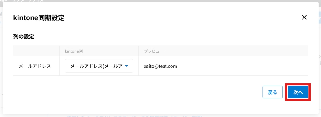 メールアドレスが入力されている列を「ファイルの列」として選択してください。
