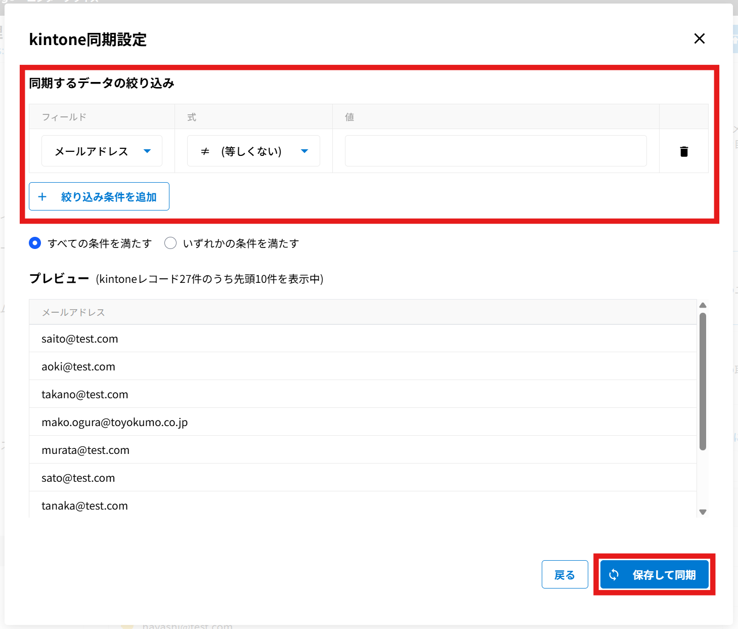 同期すると、同期前の状態には戻せません。CSVファイルを読み込んで編集する場合
