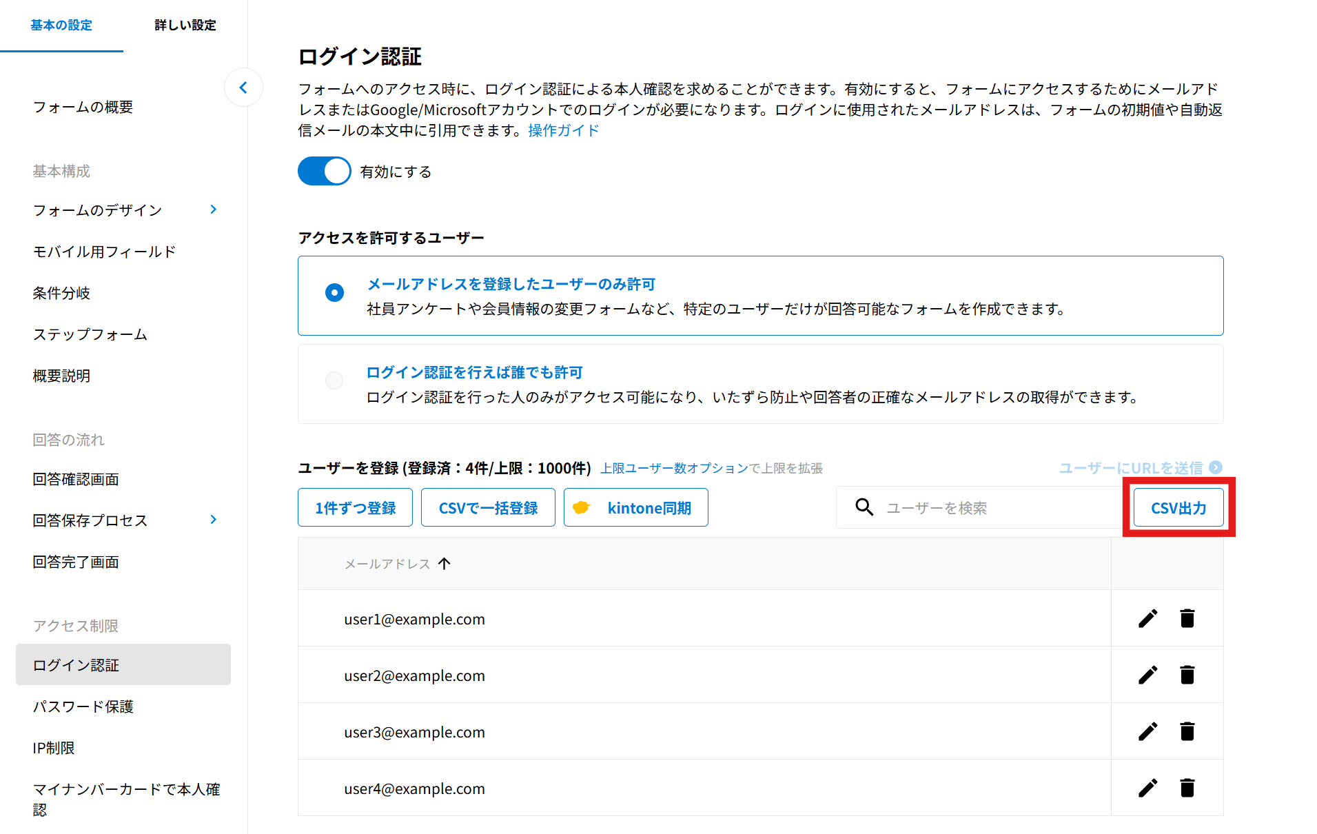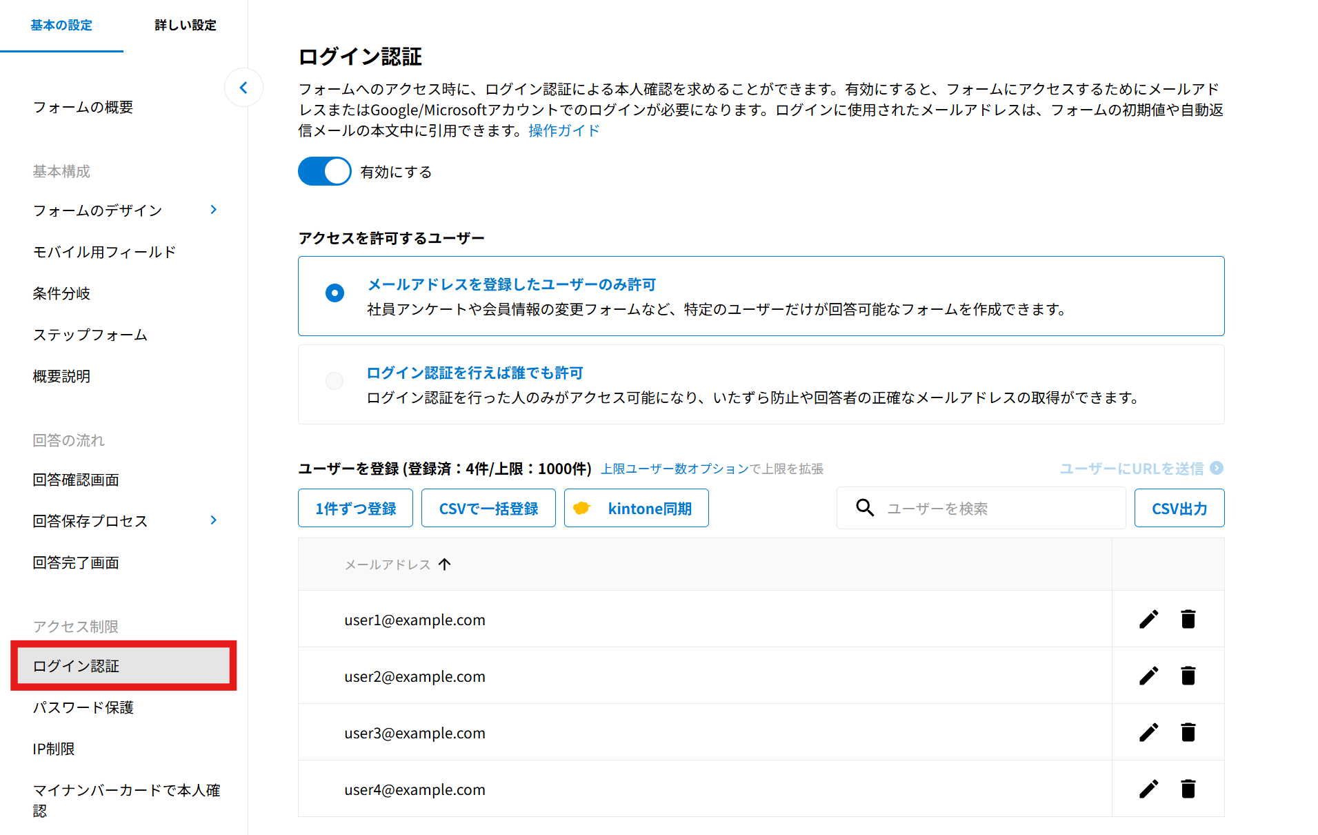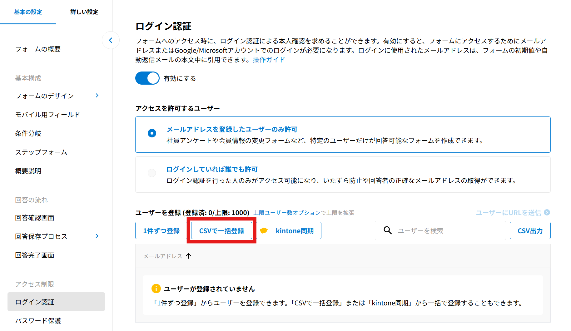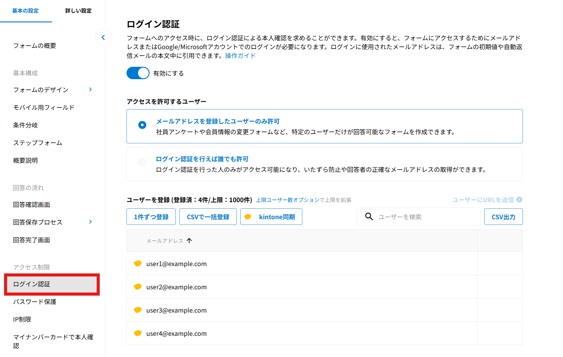 2025年10月29日のバージョンアップにて、「ユーザー管理」は「ログイン認証」に名称を変更しました。