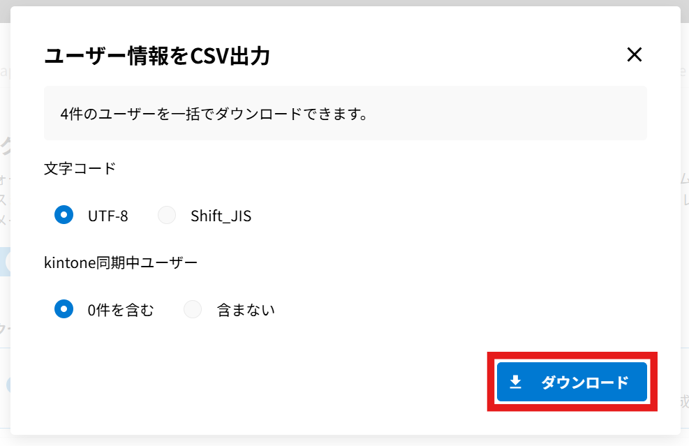 3.文字コードを選択し、[ダウンロード]をクリックします。