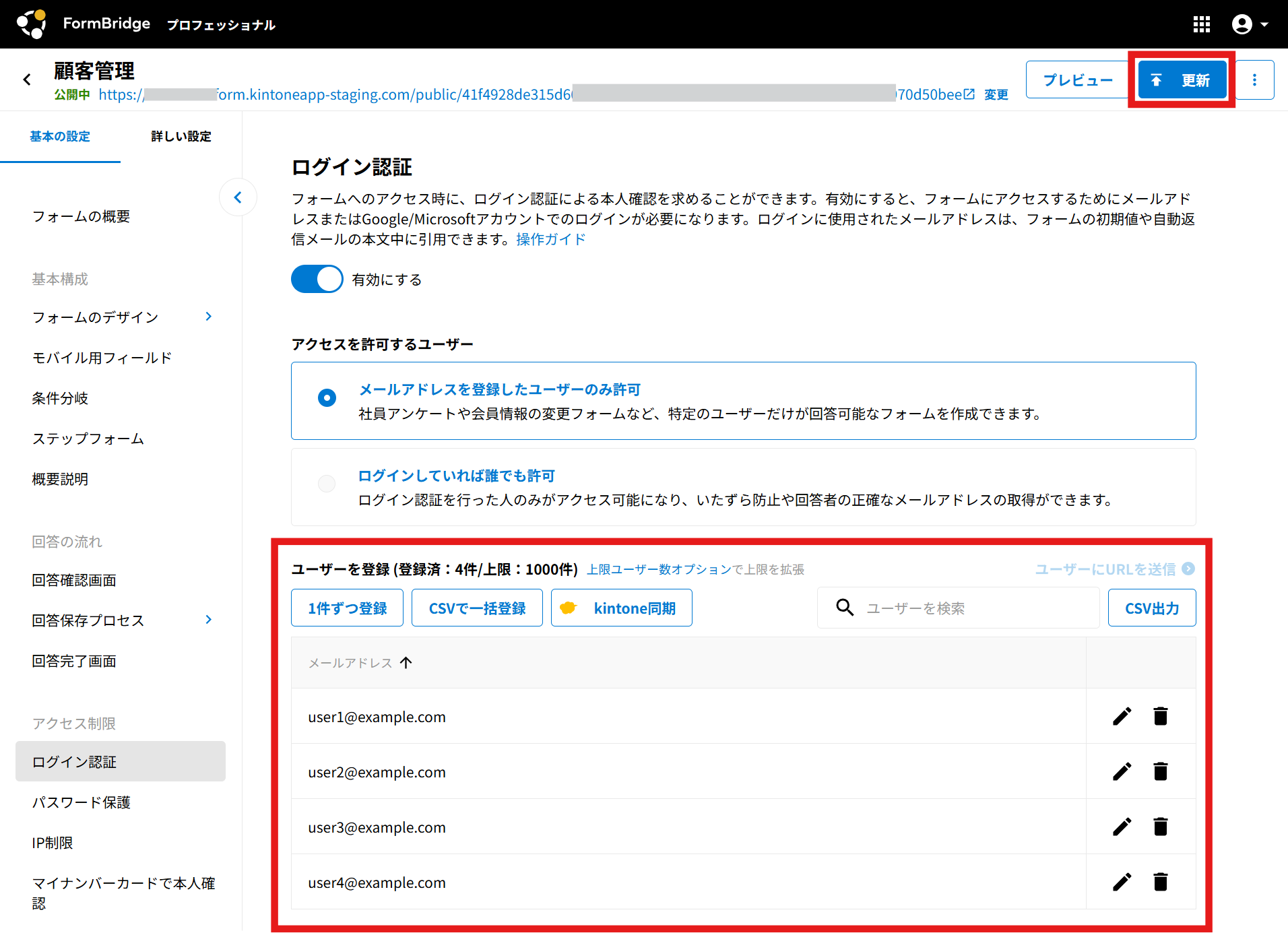 認証元のkintoneアプリで編集する場合