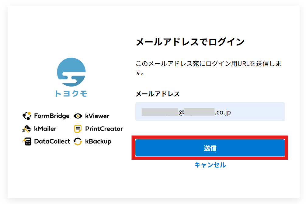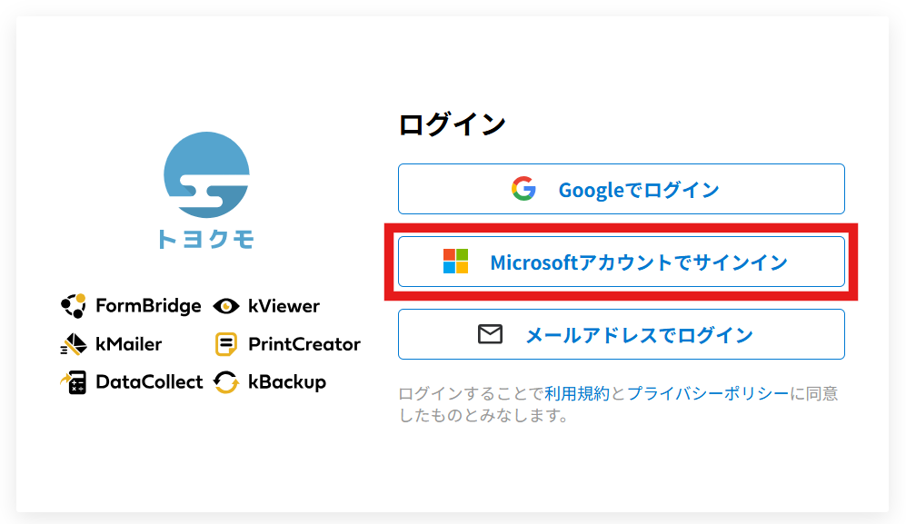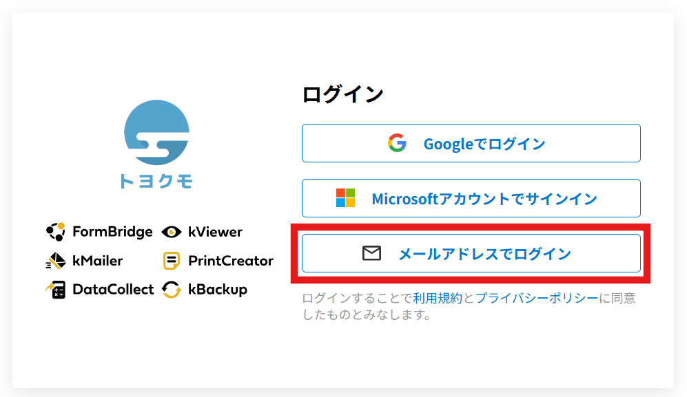 アクセスができない場合、よくある質問をご覧ください。メールアドレスでログインする方法