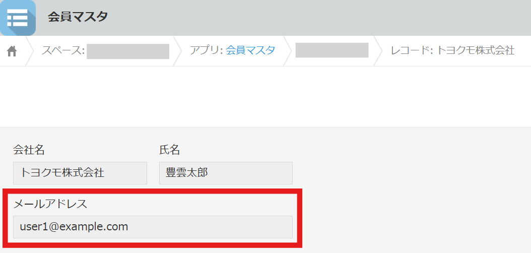 • メールアドレスとして設定可能なフィールドの種類は、文字列(1行)/リンク/文字列(複数行)/リッチエディター/ルックアップです。なお、テーブル内フィールドは使用できません。