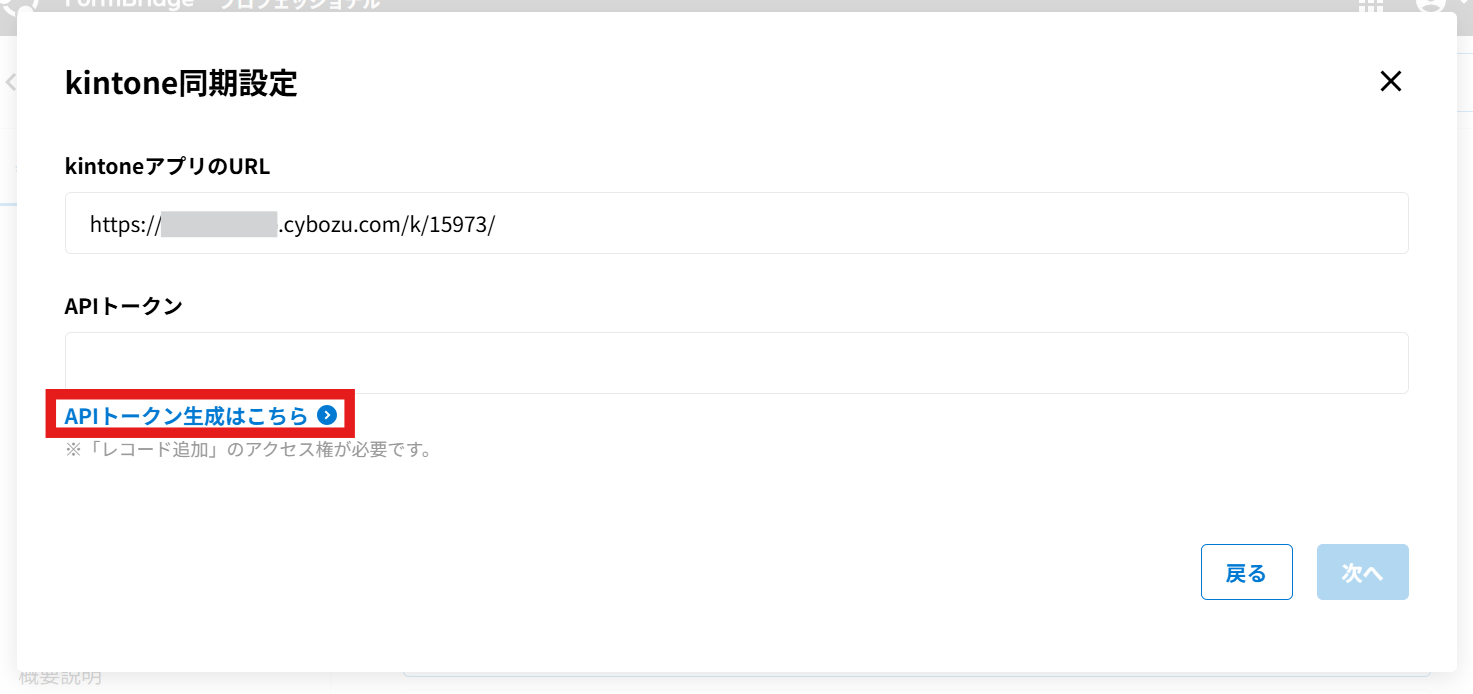 APIトークンは、「レコード閲覧」のアクセス権が必要です。