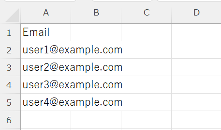 「Email」のような分かりやすい項目名を列の一番上の行に記載してください。