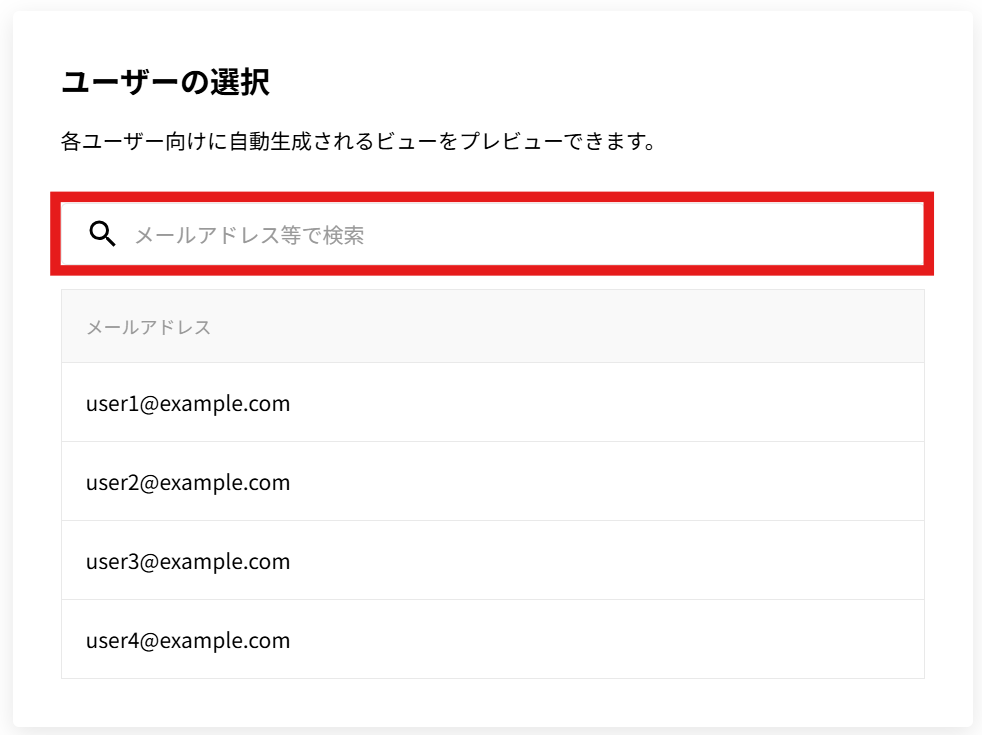 [メールアドレス等で検索]でユーザーを検索をすることも可能です。