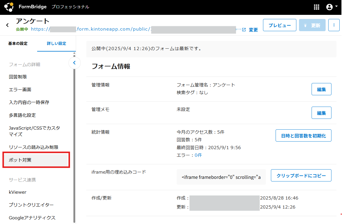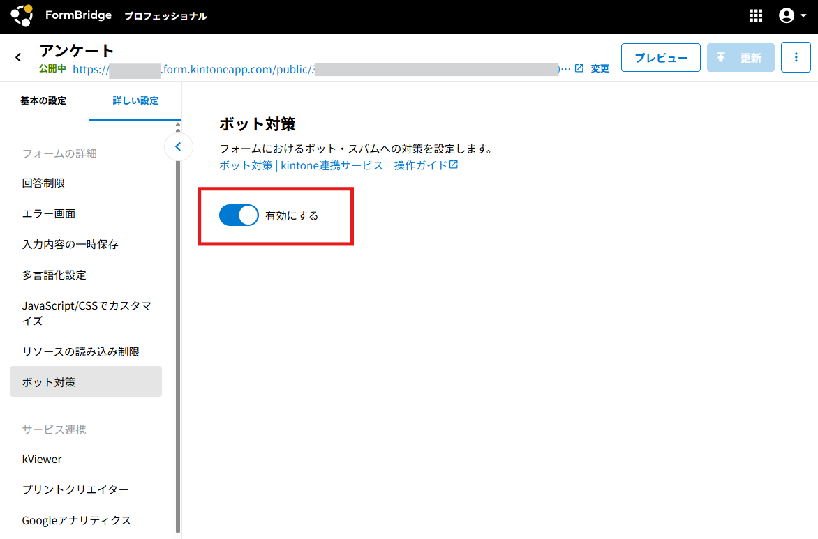 機能の詳細は、フォームブリッジがボット/スパム投稿を排除できるようになりましたをご確認ください。設定方法