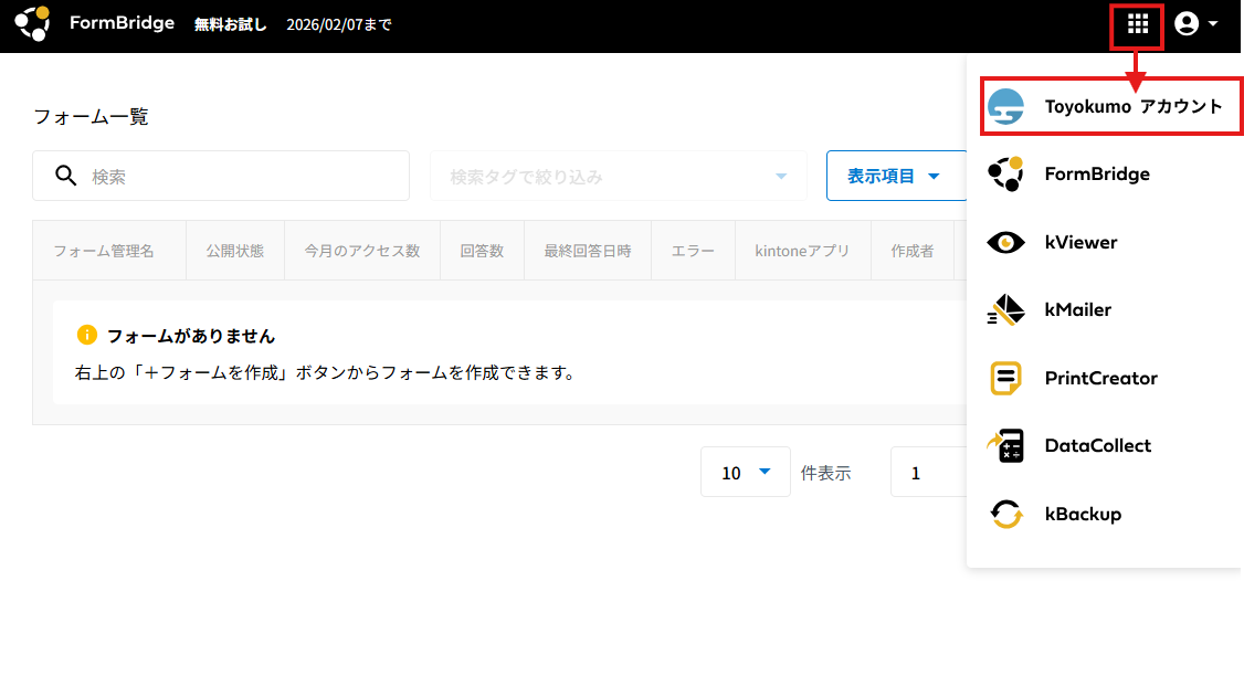 ログイン方法につきましては、トヨクモ kintone連携サービスにログインするをご確認ください。ポイント