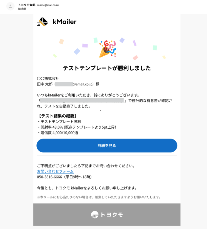 1.自動終了した場合、オーナーのアドレスに自動判定の結果が届くので、メールを確認します。