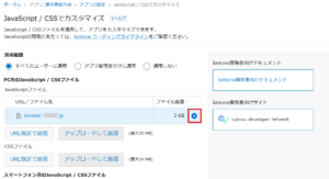 kintoneアプリにすでにkMailerのJavaScriptが設定されている場合、削除していただき、手順3.でダウンロードしたJavaScriptを追加してください。