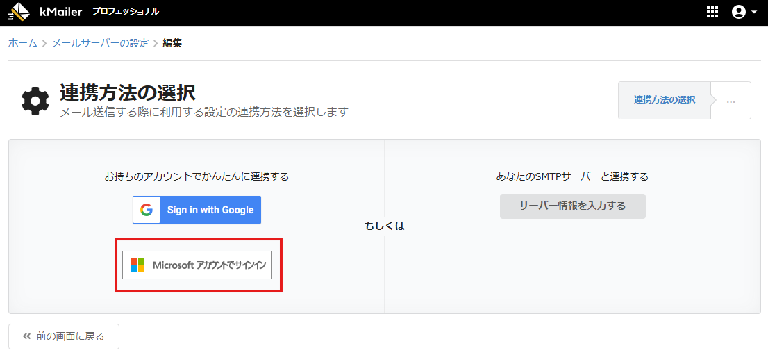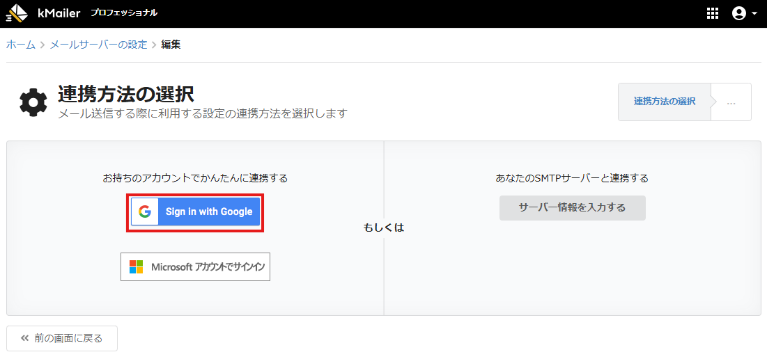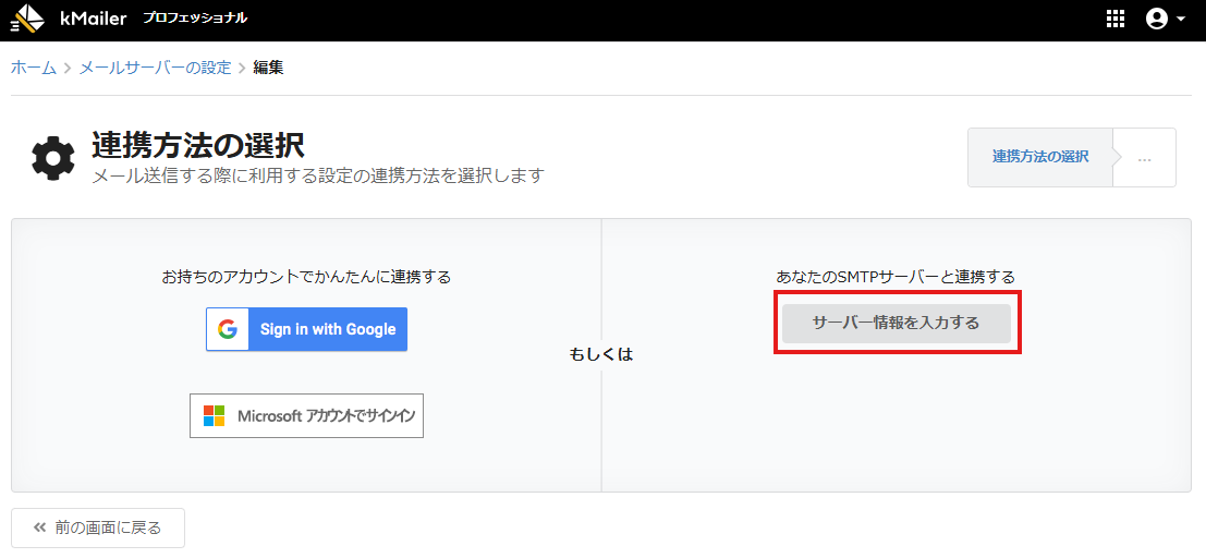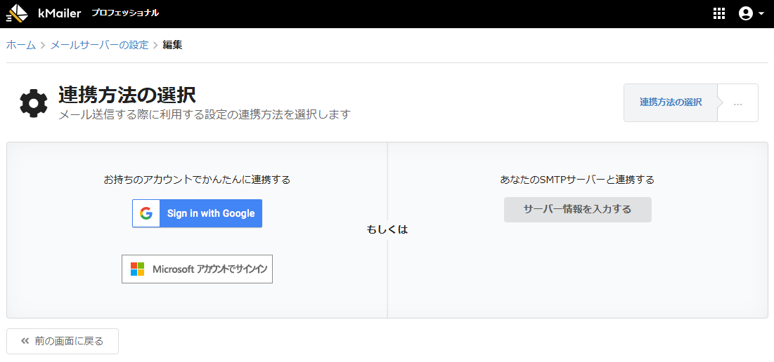 3.メールを送信する際に利用するメールサーバーとの連携方法を選択します。