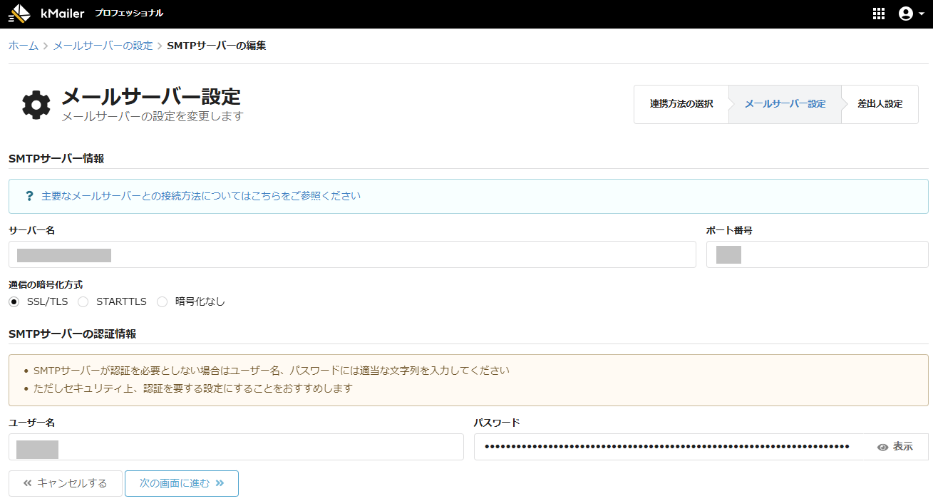 (下段:SMTPサーバー情報を入力して連携している場合)