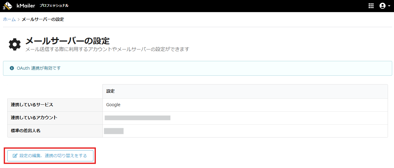 2.「設定の編集、連携の切替えをする」をクリックします。