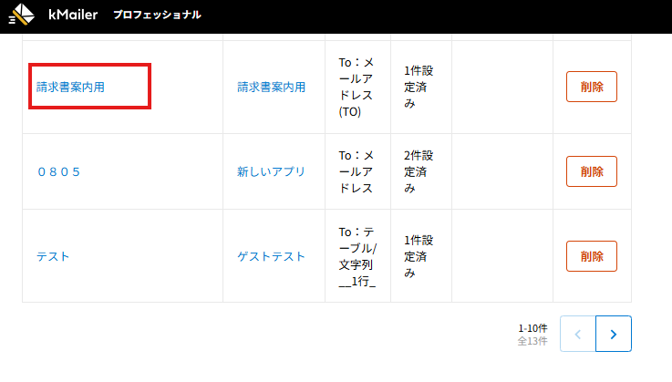 メールテンプレートアプリの編集