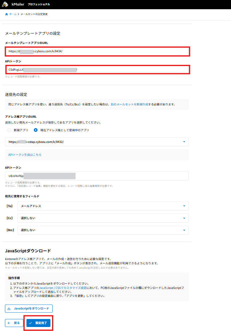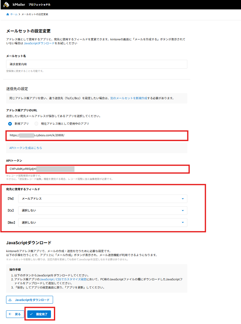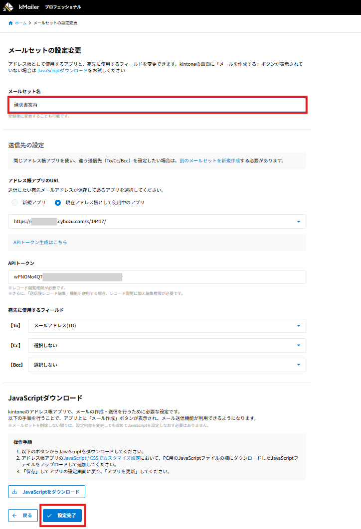 [設定完了]をクリックし、設定は完了です。