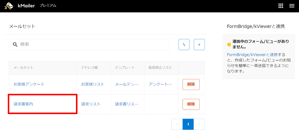 1.メールテンプレートを追加したいメールセット名をクリックします。