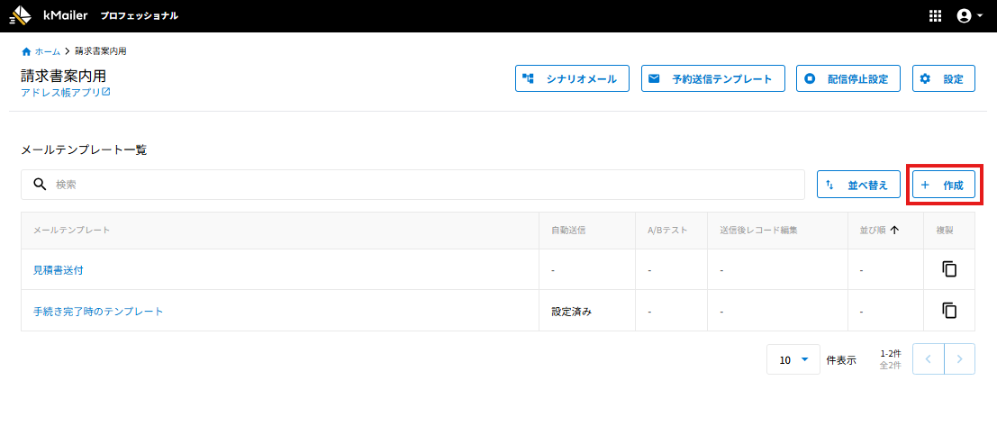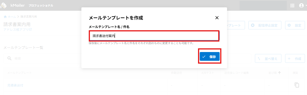 • ※【2024年10月1日】以降に新規作成されたkMailer環境をご利用の場合、メールテンプレートはkMailer上でメールセットごとに保存されるため、メールテンプレートアプリは不要となります。