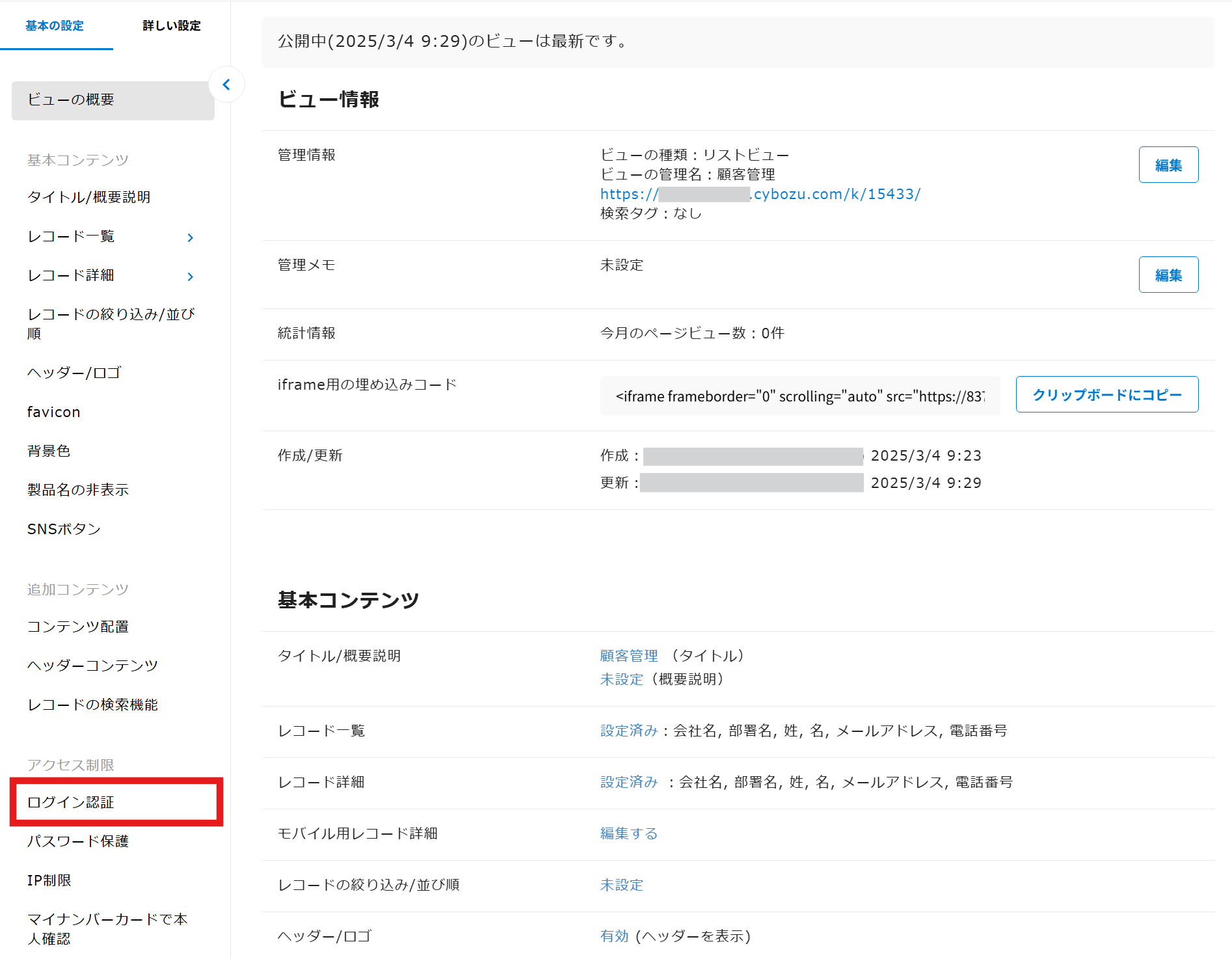ログイン認証の編集方法については、ログイン認証を編集するをご確認ください。
