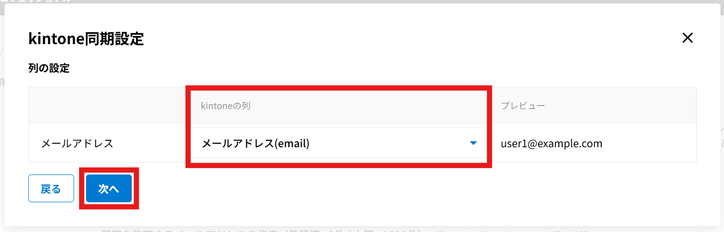 メールアドレスが入力されている列を「ファイルの列」として選択してください。