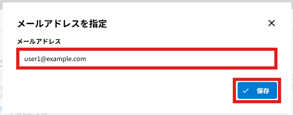 - メールアドレスとして設定可能なフィールドの種類は、文字列1行/リンク/文字列複数行/リッチエディター/ルックアップです。(テーブル内フィールドは使用できません。)