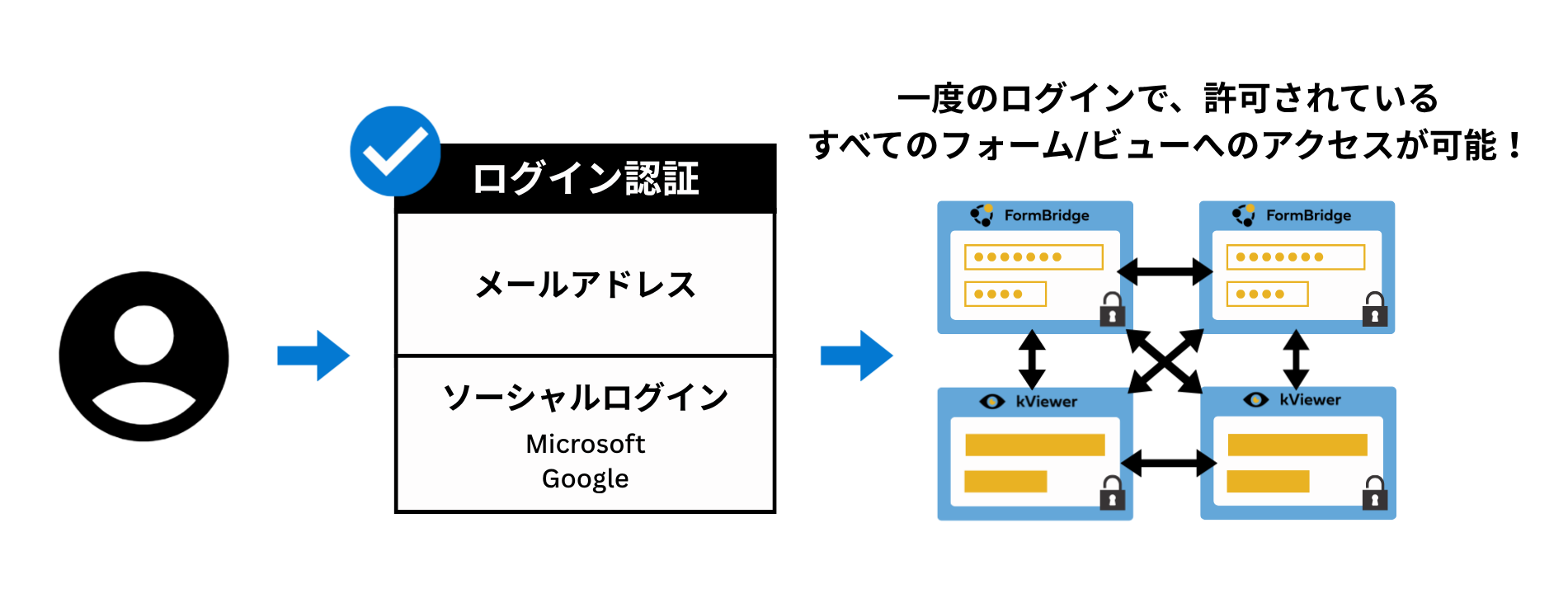 ユーザーは一度認証を通ることで、認証のかかったビューやFormBridgeで作成したフォームを、アクセスの都度認証することなくで行き来することが可能です。