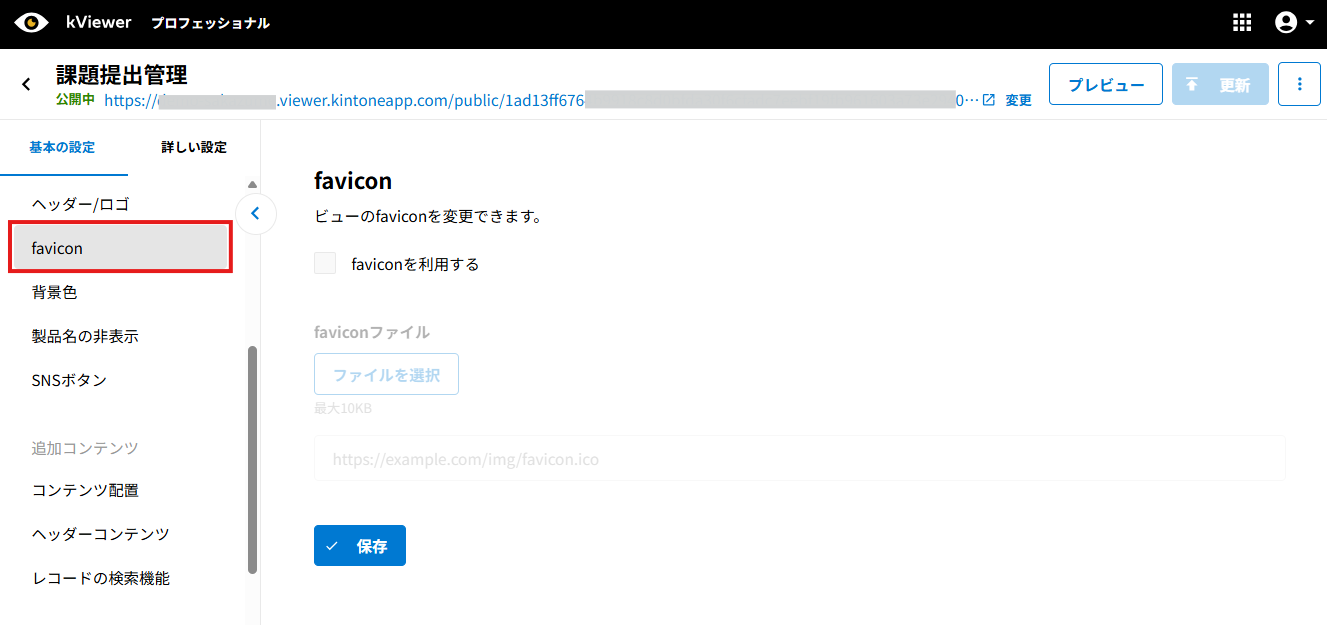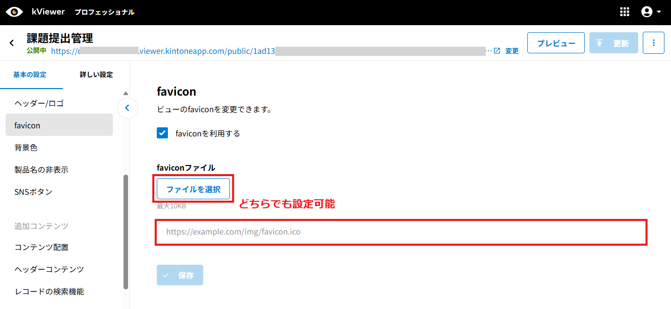 favicon(ファビコン)の設定では、Webブラウザのタブに表示されるアイコンの変更が可能です。