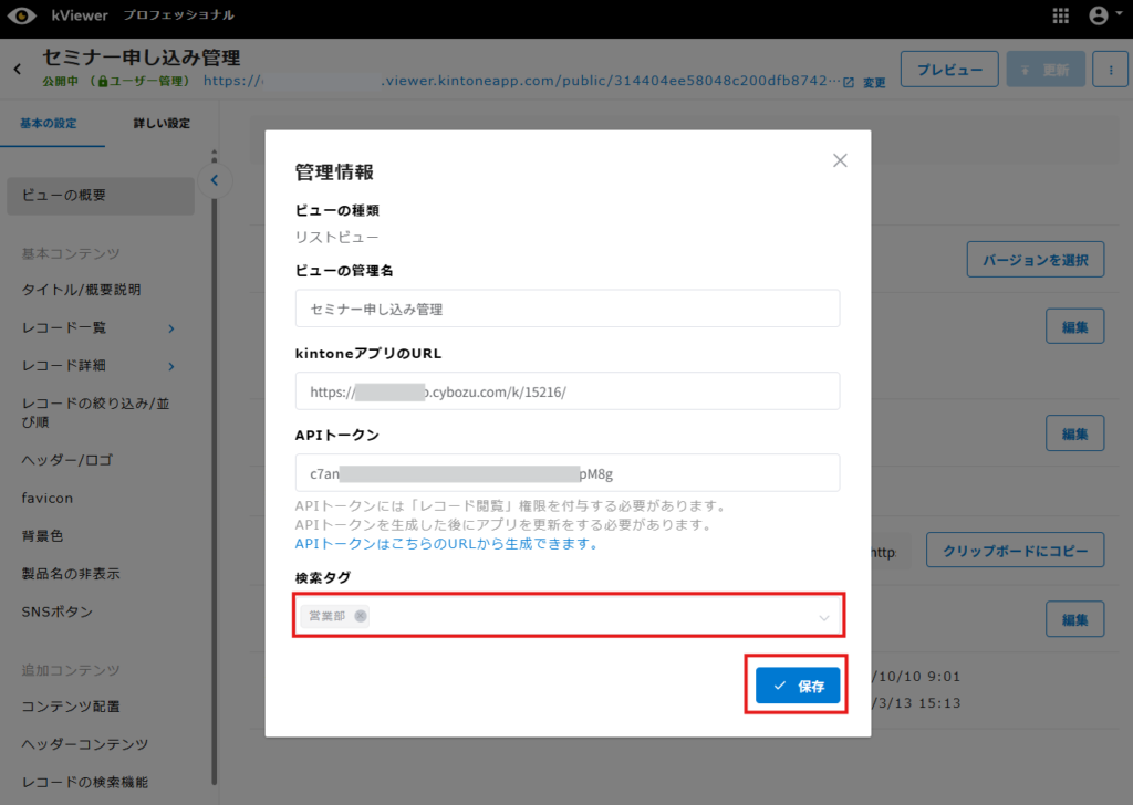 4.設定したい検索タグを選択し、[保存]を押下します。