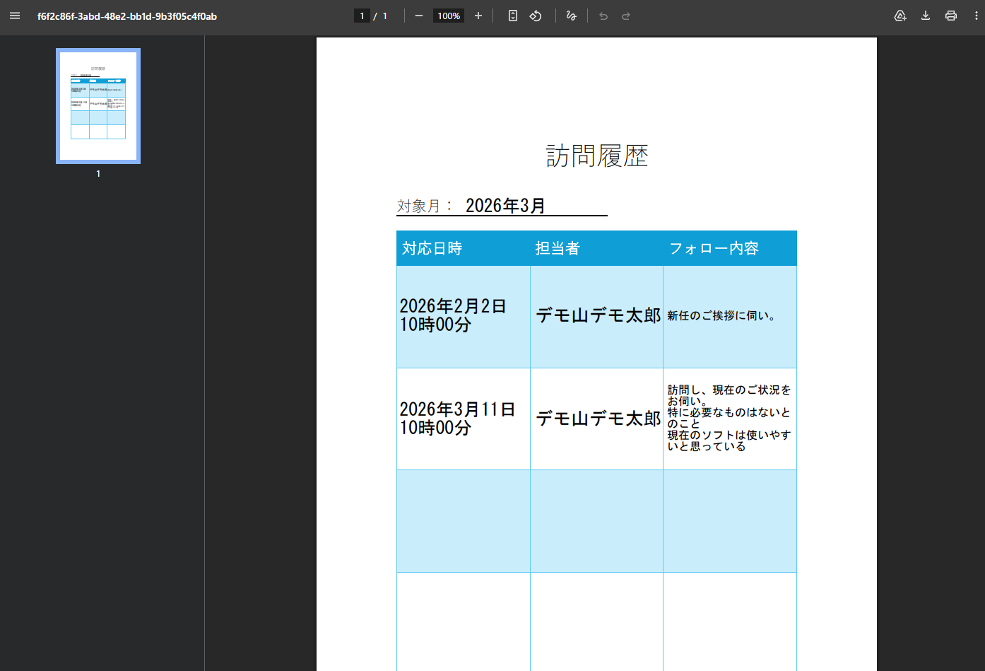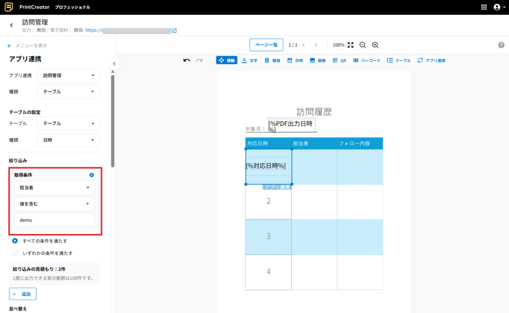 右の例では、ログイン名が「demo」の担当者で絞り込みを行っています。