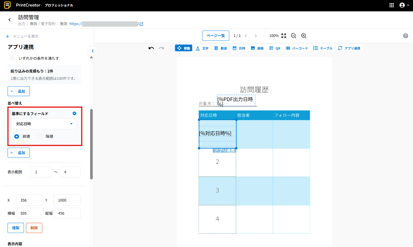 • レコードの並び順は、アプリ連携で取得したレコードを出力するときの並び順の設定です。