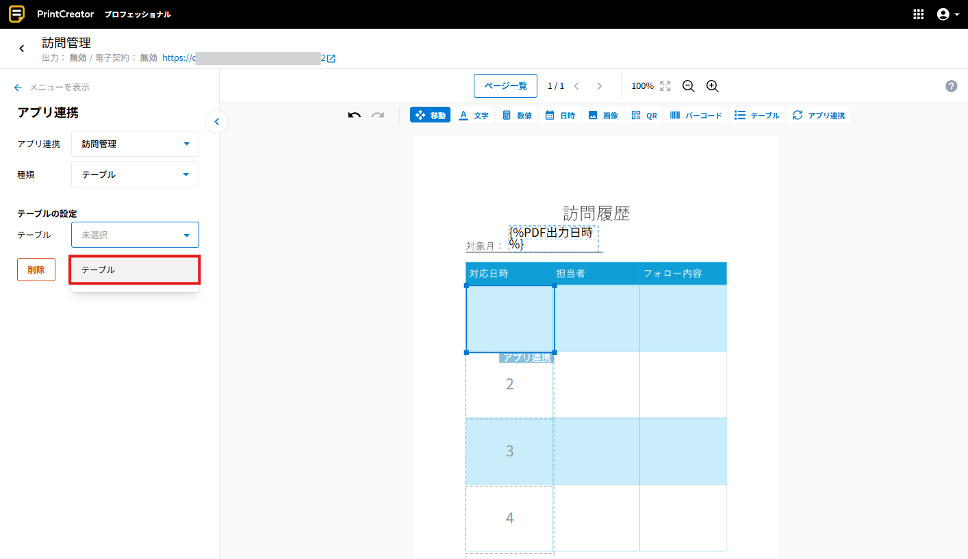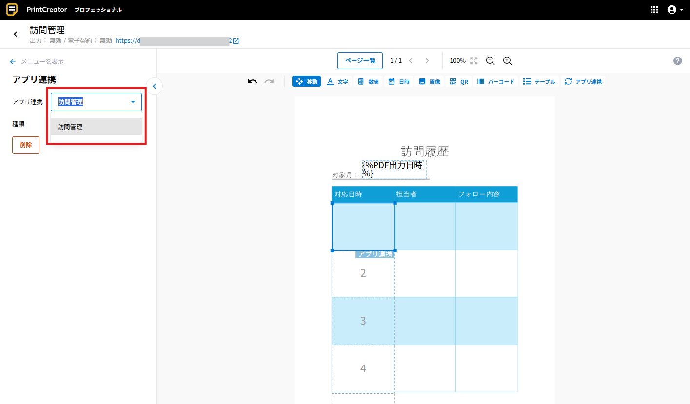 一覧表でアプリ連携をご利用されたい場合は、一覧表でアプリ連携機能を利用するをご確認ください。機能の詳細は、アプリ連携とはをご確認ください。