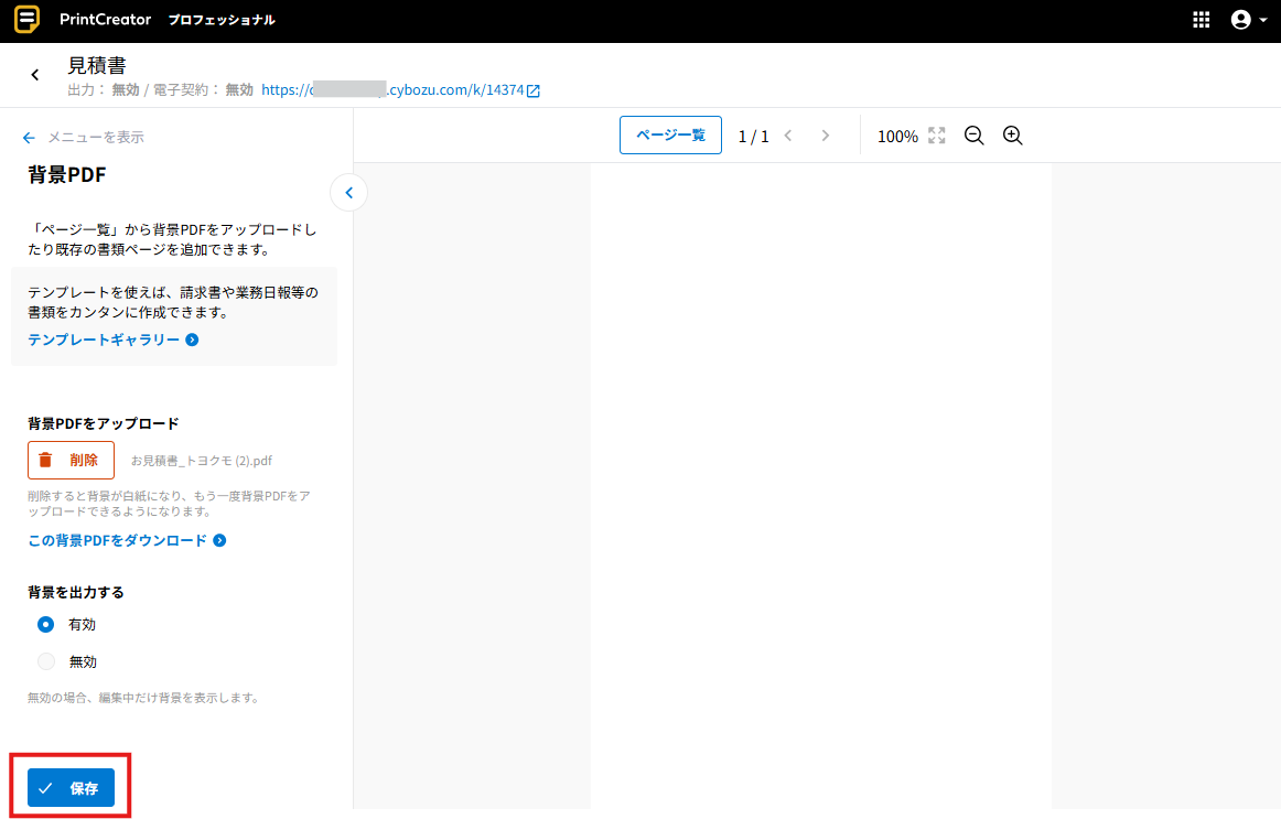 設定後、左下の[保存]をクリックしてください。背景PDFが保存されます。