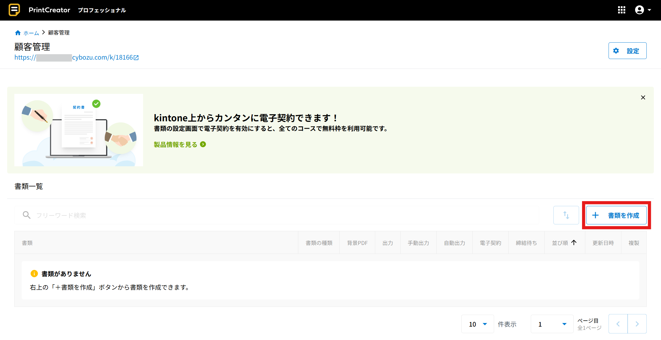 インポートして書類を作成する場合、連携するkintoneアプリの構造も同じである必要があります。