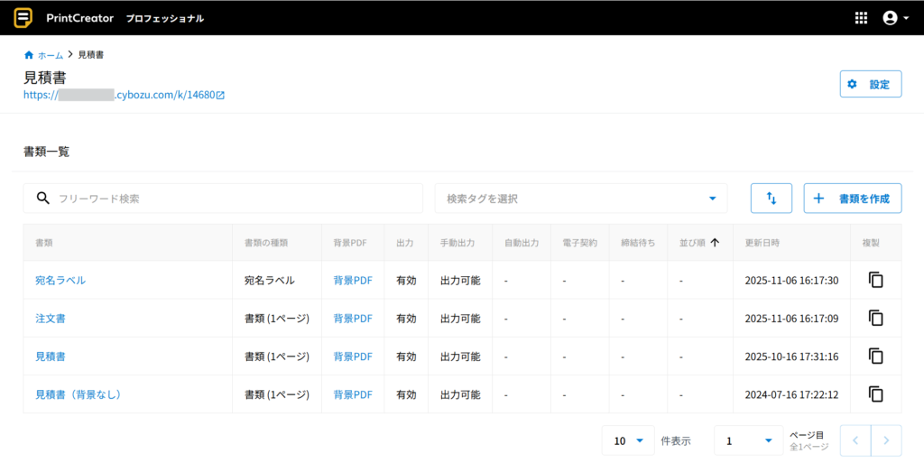 1.PrintCreator管理画面のアプリ一覧より該当のkintoneアプリをクリックし、背景PDFを変更したい書類をクリックします。