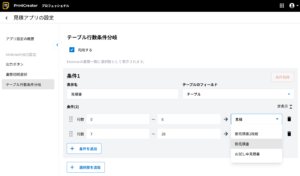 ⑤テーブルが〇行の場合、どの書類で出力するかを設定します。