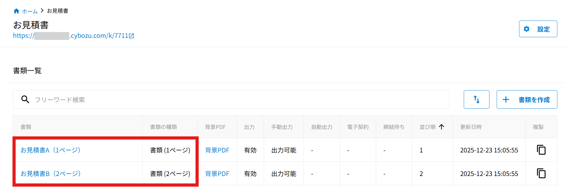 設定方法については、書類を作成するをご確認ください。