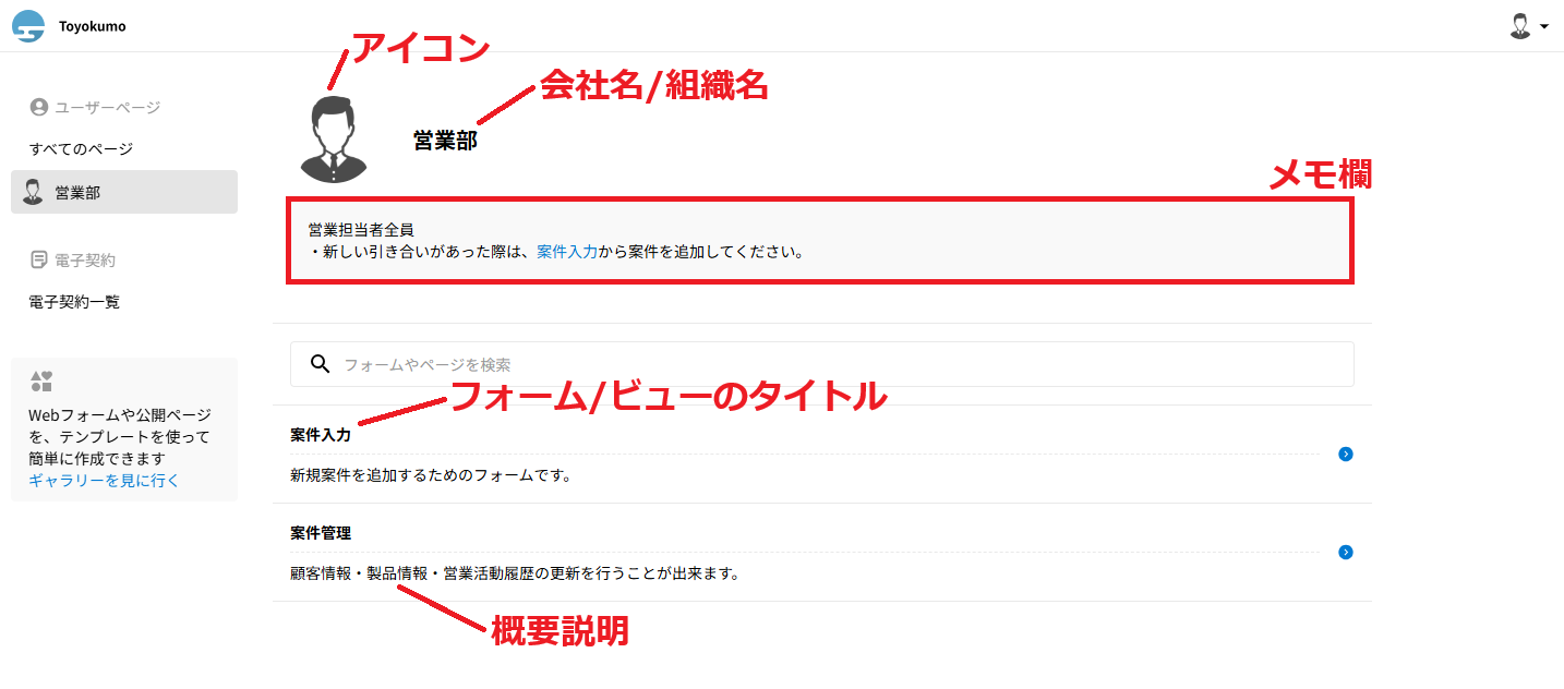 設定方法については、プロフィールを設定するをご覧ください。 - フォーム / ビューのタイトル