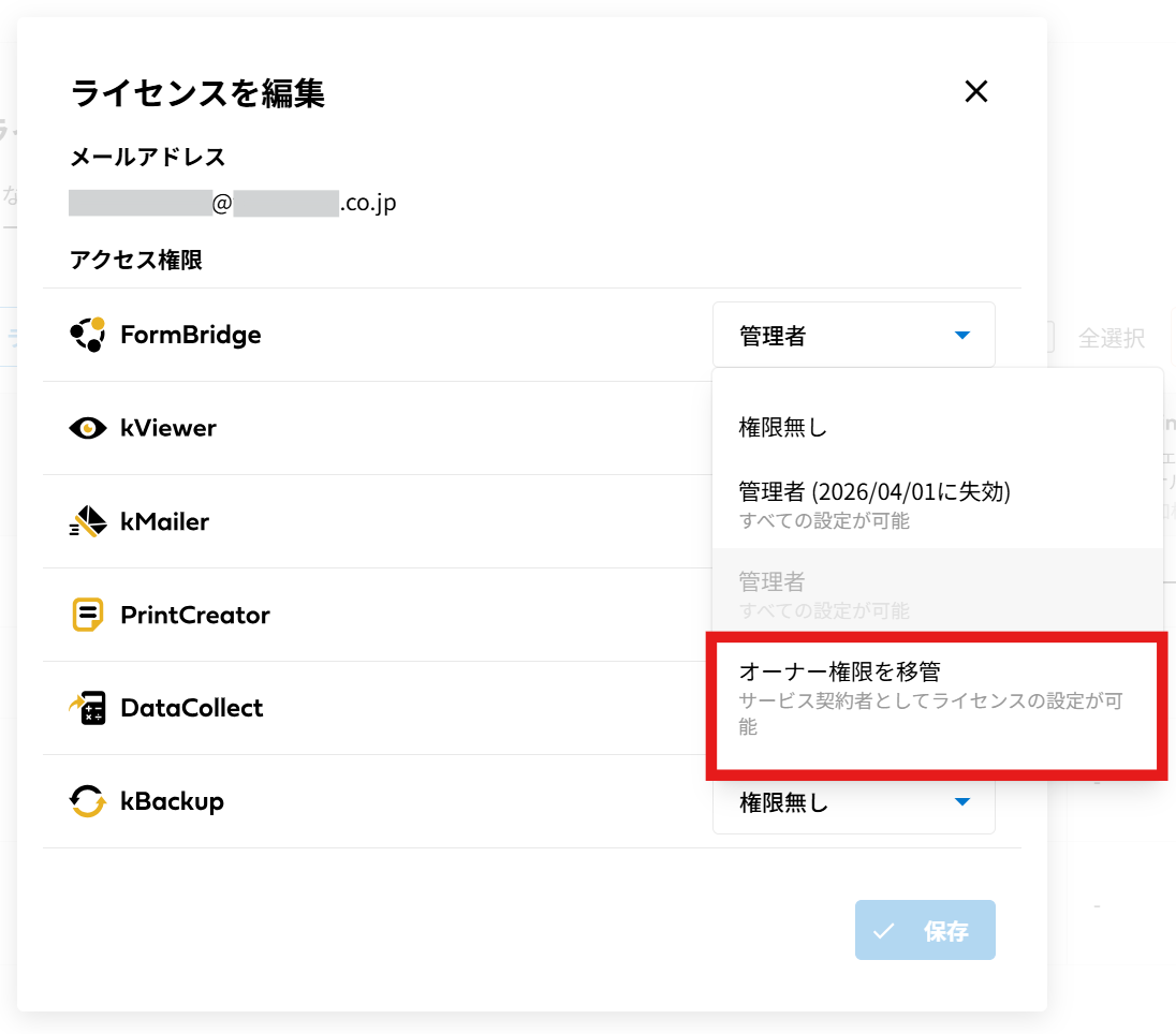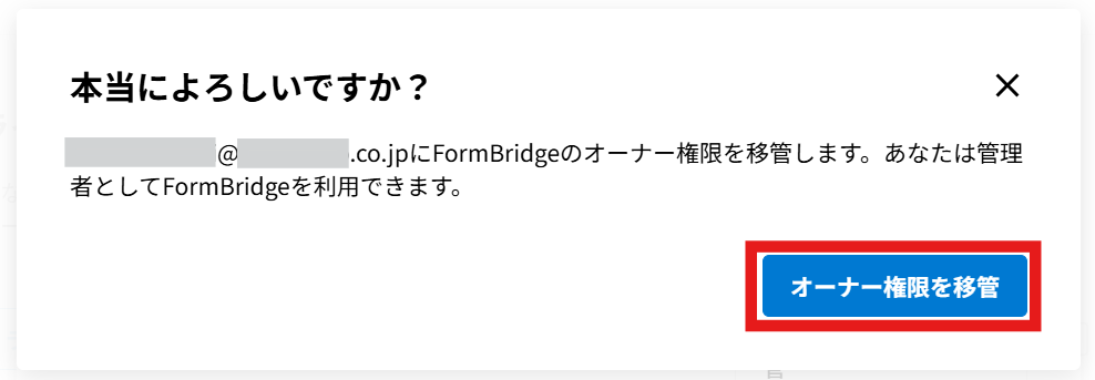 管理者にオーナー権限を移管することができます。
